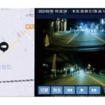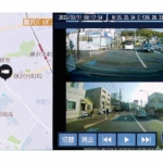 地図とともに車両前後の記録映像を表示。画面の右下は加速度/速度を示すグラフだ。