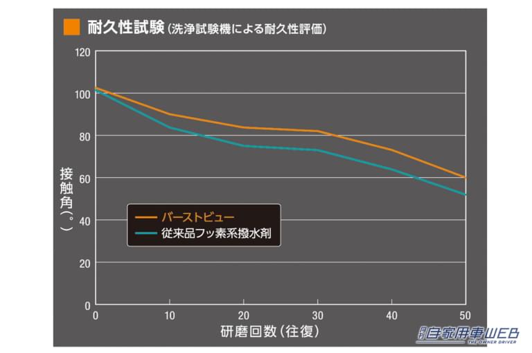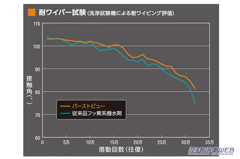 従来のフッ素系ガラス撥水剤に比べ反応性が高く、施工直後から高い撥水性を発揮。また、これまで以上に水滴が滑るように撥水するので、より一層雨天運転時の安全な視界の確保に期待が持てる商品だ。