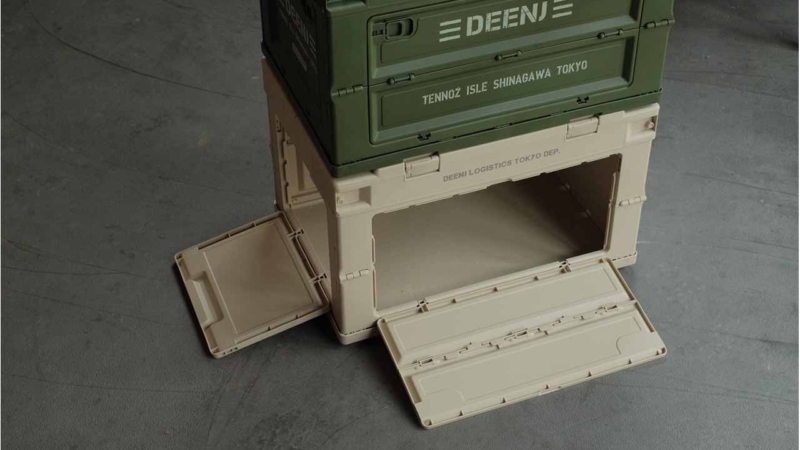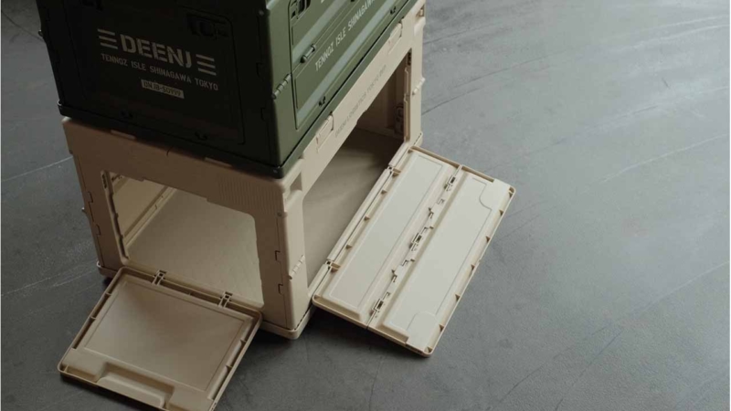 しかし一旦重ねてしまうと下の箱から中のものを取り出すことが出来ないという問題点もあったが、今回発売されたDEENJの折り畳みコンテナは「横が開く」という新機能を搭載することで、この問題を解決。コンテナを重ねたままでの物の出し入れを可能にしたことで、日常やアウトドアシーンなどで使う家具など多様な使い方を可能にしている。