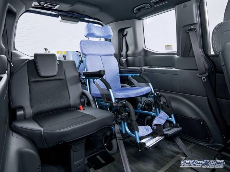 車いすに乗ったまま移動できる「車いす仕様車」は、リクライニング車いすに対応した2列目乗車タイプ、3列目に乗車してその隣に介護する方が座れるタイプ、2列目と3列目に車いすの方が2名乗車できるタイプの合計3タイプが用意されている。