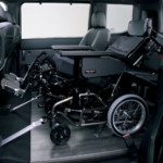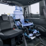 車いす仕様車2列目乗車タイプ。2列目後方に車いすの固定点を1か所追加することで、リクライニング車いすの固定がよりスムーズなっている。