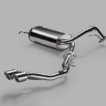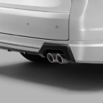 大型でワイドな存在感を発揮し、力強いスタイリングを 強調するフロントアンダースポイラー。センター部と左右の3ピース構成。ボディカラーとツヤ有りブラック 塗装の2トーン塗装。標準装着のフロントバンパーより約25mmダウンとなる。価格:9万3500円(カラード仕上げ) /8万2500円(未塗装)(2022年8月末発売予定)