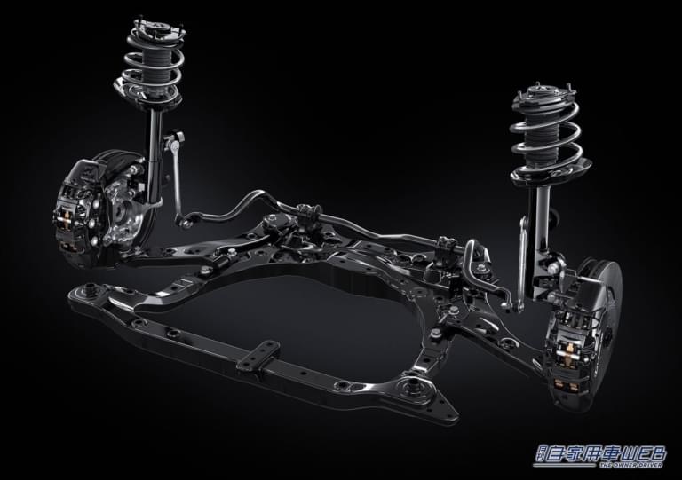 また、マルチリンク式サスペンションの採用にあわせて、GA-Kプラットフォームのリヤ部分を新規に開発。プラスして、車両加減速/操舵旋回時のサスペンション入力をしっかりと支える、ねじり剛性の高いリヤボディ骨格配置を採用した。骨格の接合にはレーザースクリューウェルディング(LSW)や構造用接着剤に加えて、短いピッチで溶接を可能とする短ピッチ打点技術を採用し接合剛性を高めている。さらに、ステアリングサポート材質へ高剛性アルミダイキャストの採用やサスペンション締結部の剛性も向上。製造工程の造り込みにより、トー/キャンバー/ロールステアなどホイールアライメント精度を向上させ、動的性能も最大限に引き出すという徹底した拘りが散りばめられている。