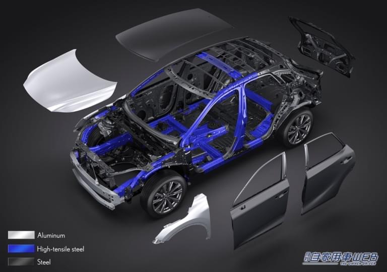 車両重量は従来型比で90㎏の軽量化。これはプラットフォームの主要骨格部材を最適な材料に変更し、フロントフェンダーのアルミ化や、Bピラーには世界初となる安全性と軽量化を両立した2GPa(ギガパスカル)級のホットスタンプ材を採用することで達成している。