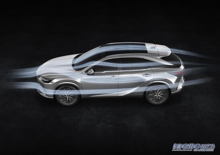 空力についても、フロントまわりの風の流れの最適化によって、Cd値の低減だけでなく、優れたブレーキの冷却性も確保されている。エンジンアンダーカバーにはディンプル形状を設置し、微小渦を床下に発生させることで車両の接地感を高め、高速走行時の走行安定性を向上させている。また、ドアの凹凸とガラス面までの段差を最小化することで高い整流効果を発揮。リヤスポイラーも後端形状と門型スポイラーの形状を工夫し、流れる空気の乱流を抑制して操縦安定性を向上させている。