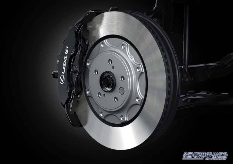 新型「RX」には、従来型からラインナップされている「F SPORT」も設定されるが、「RX500h」には、パワートレーンまで強化されるパフォーマンスモデルの「F SPORT Performance」がラインナップされる。フロントブレーキには、対向6ピストンブレーキキャリパーを採用して、リニアでダイレクト感のあるブレーキフィーリングとした。後輪転舵角を拡大した「Dynamic Rear Steering(DRS)」も新採用。車速に応じて、後輪を前輪と逆相/同相に最大4度転舵させる。さらに、21インチの専用開発タイヤを設定し、ハンドリング性能をさらに向上させている。