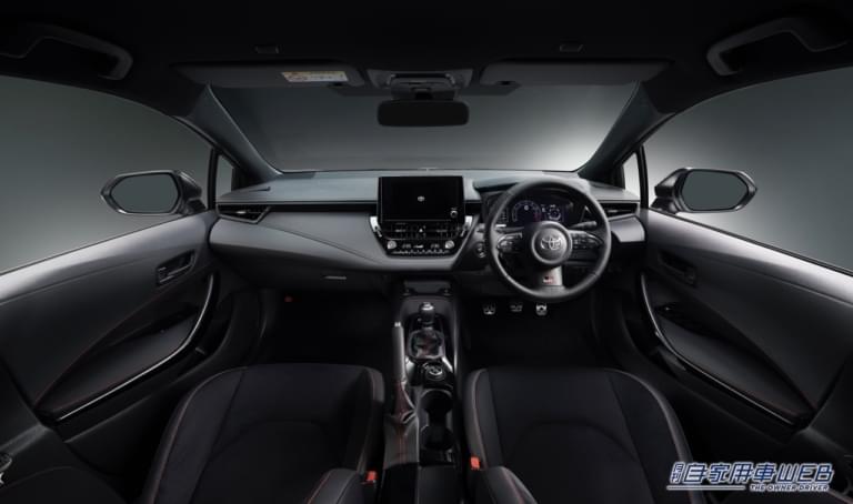ボディ剛性も構造用接着剤を3.3m累加で塗布し、ボディ補強ブレースを追加することでさらに強化している。ディファレンシャルギアのローギアード化と、トランスミッションの1〜3速のクロスギアレシオ化により、動力性能の向上と気持ちのいいギアの繋がりを実現しているとのこと。さらにサスペンションにモノチューブアブソーバーを採用し、タイヤも「GRカローラ RZ」に対し、10mm拡幅したハイグリップタイヤとすることでコーナーリング時の安定性とブレーキ性能を向上させている。