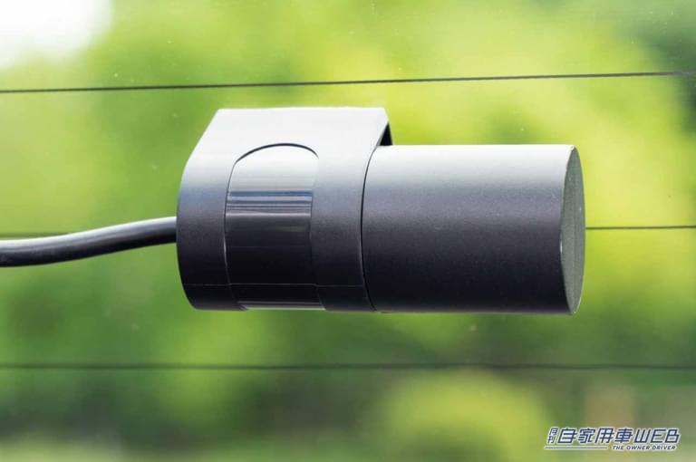 最初に目を引くのは上質感あふれるルックスだ。GPSアンテナをブラケットに仕込むことでボディはスリム化が図られており、滑らかな曲面で構成。前面はマットブラック、側面と背面はピアノブラックと部分ごとに仕上げも異なっている。これだけでも所有欲をくすぐられる人は多いはず。付属しているリヤカメラユニットはブラケット一体で本体と共通のデザインテイストを持つ。小型なのでルームミラーに映り込んでも視界を妨げたり目障りにならない。