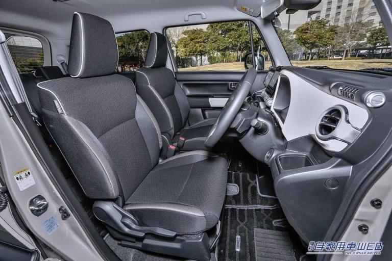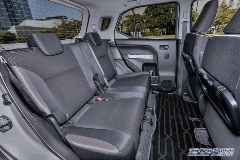 後席スライド機構も備えるなど、アレンジ性能も十分。コンパクトな見た目から想像するよりも室内は広い。床面は防汚処理が施されるなどレジャー用途を考慮した設計も与えられている。