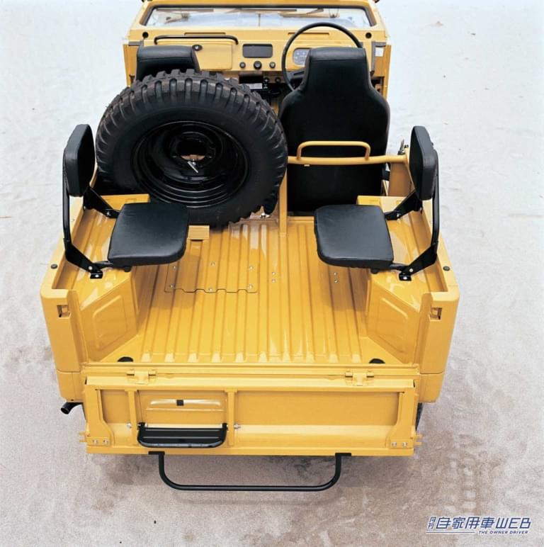 初期型では3人乗り(法規上は軽トラックだったので2名乗車が原則)だったが、LJ20型では4人乗りを設定。荷台に大きな荷物を積むときは座面を跳ね上げて使う。後方から乗り降りしやすいようにステップも用意されていた。
