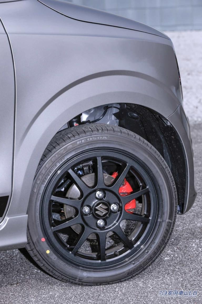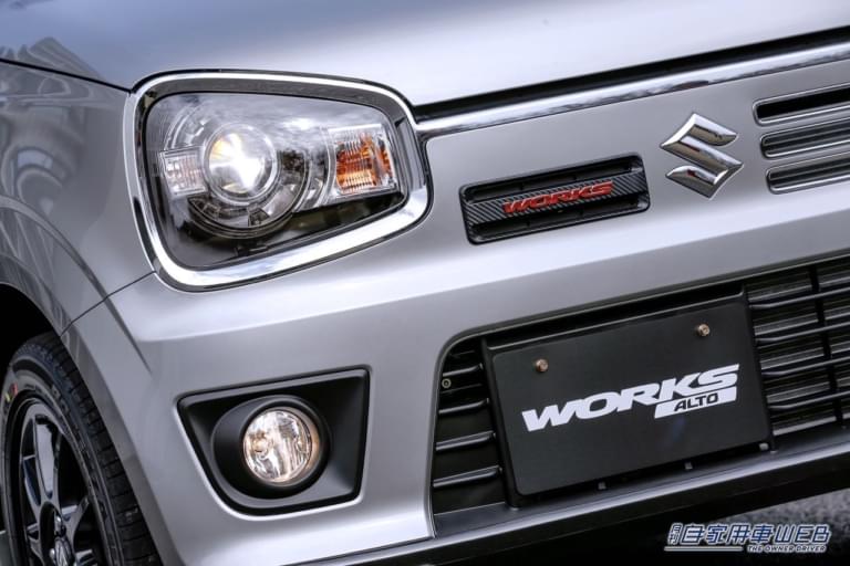 ホイールリム幅を拡大し、曲がり易さを向上させた15インチアルミホイールを装着。ブラックメッキのヘッドライトや「WORKS」を冠するガーニッシュなど、スポーティな雰囲気を高めるドレスアップパーツも充実。