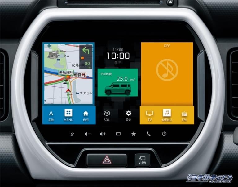 9インチHDディスプレイのメモリーナビゲーションはメーカーOP。フィッテングに優れることもあって装着推奨のアイテム。価格は18万4800円。