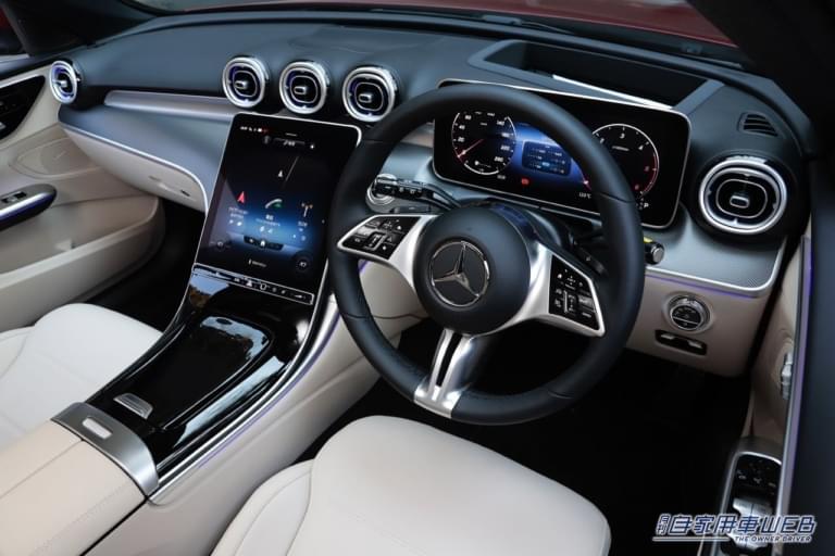 ベースとなるCクラスステーションワゴンと同じく、12.3インチのワイドディスプレイを採用するデジタルメーターと11.9インチの縦型ディスプレイを配置。