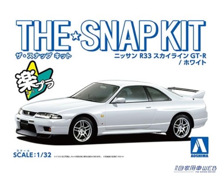 株式会社青島文化教材社は、6月29日に「ザ☆スナップキット」シリーズに「ニッサンR33スカイラインGT-R(3種)」を追加。2022年11月に発売予定であることを発表した。また初回生産分に特典として「つながる! 高速道路ジオラマペーパークラフト」が付属するという。