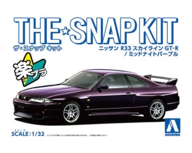 ニッサン R33 スカイライン GT-R(ミッドナイトパープル)完全新金型! 選択式でローダウン仕様にも組み立て可能に「ザ☆スナップキット」とは、ボディ色[…]