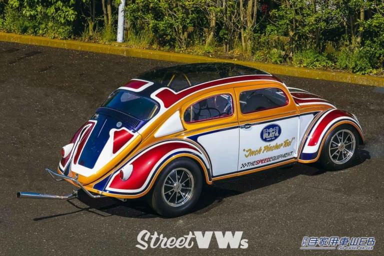 その2代目となるのが1971年にデビューした「Inch Pincher Too!」です。速さだけでなく、奇抜なペイントとチョップトップが衝撃的な一台でした。実車はすでに消息不明ですが、日本の空冷VW専門ショップFLAT4が1993年にレプリカを製作。そして2021年に、より当時の雰囲気に近づけてリニューアルを果たしました。