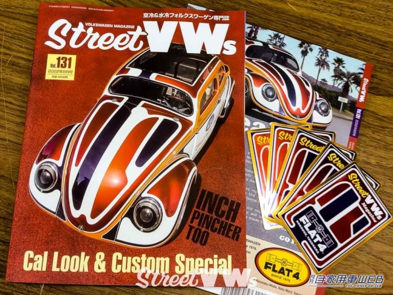 また、Street VWs Vol.131をFLAT4店頭またはオンラインショップでご購入いただくと、Inch Pincher Too!のペイントをモチーフにしたFLAT4×Street VWsコラボデカールをプレゼント中です! FLAT4でしか手に入らない限定品ですのでお早めにお買い求めください。