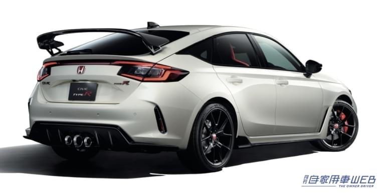 エクステリアデザインも現行型シビックをベースに、ボディと一体となったワイドフェンダーを採用。サイドパネルから美しく流れるような造形とするとともに、フロントからリアに抜ける一連の空気の流れをコントロールすることで空力性能を向上させている。ボディカラーには、「タイプR」の象徴的なカラーであるチャンピオンシップホワイトのほか、フレームレッド、レーシングブルー・パール、クリスタルブラック・パールのほか、新色としてソニックグレー・パールを追加している。