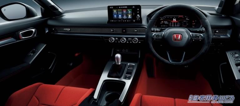 ボディは、現行型シビックをベースに「タイプR」としての走行性能を高めるため、さらにローアンドワイドなパッケージを追求。視界においても広い水平視界とすることにより、高い速度域でもドライバーにダイレクトに情報が伝わることを目指している。