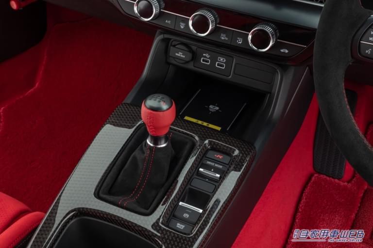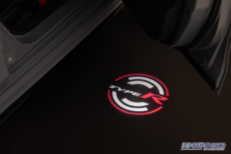 さらに、ドア開閉時に「TYPE R」ロゴでオーナーをもてなす「サイドステップガーニッシュ」は、精悍さを感じさせるブラックアルマイト仕上げとし、「パターンプロジェクター」はホワイトとレッドの2色で「TYPE R」ロゴを美しく映し出し、乗降時にオーナーの気持ちを高める。加えて、ドアミラーカバーやワイヤレス充電器、ユーロホーンなども用意される。