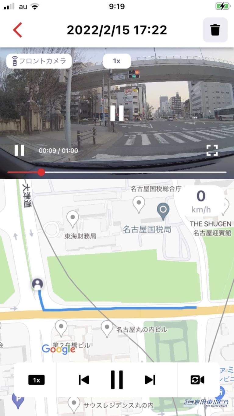 自動防眩インナーミラー(ドライブレコーダー付)録画再生画面