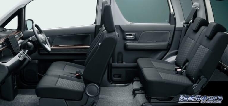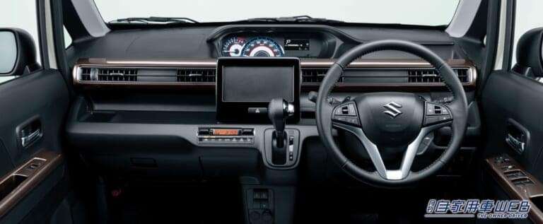 今回の一部仕様変更で、エクステリアに専用意匠のヘッドランプ、フロントグリル、フロントバンパーを採用し、精悍なデザインとした「ワゴンR カスタムZ」を新設定した。インテリアもブラックを基調とした内装を採用。インパネカラーパネルやフロントドアアームレストに専用のブラウンメタリックの加飾をプラスして、力強さと上質さを表現している。