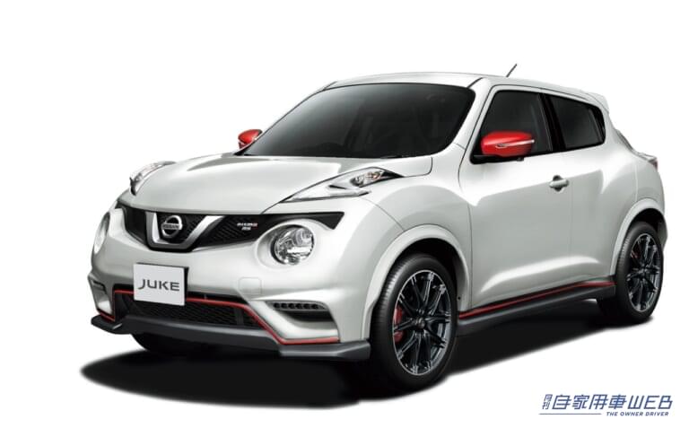 2013年2月に「ジュークNISMO」を発売。モータースポーツで培われた専用エアロを含む内外装の変更に加えて、1.6Lターボが200PS仕様に出力向上。専用サスの設定のほか、エクストロニックCVTも7速タイプに進化している。価格は285万750円。