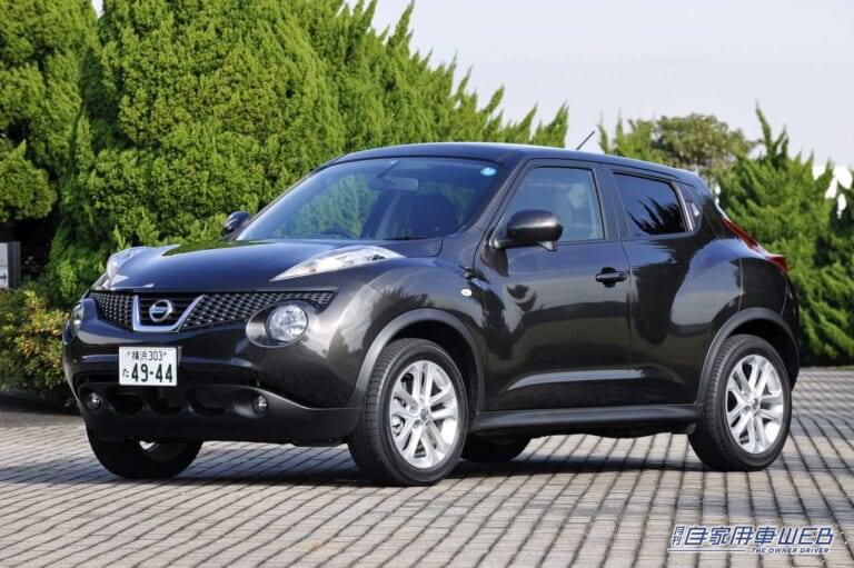 2010年に発売されたコンパクトクロスオーバーSUV。大きく張り出したフェンダーデザインや丸形&ホークアイを組み合わせた異型のツインライトレイアウト、個性十分の内装仕立てなど、スポーツテイストを織り込んだスペシャリティモデルという立ち位置も併せ持つ。ホットバージョンとして高性能ターボ車(NISMOなど)も設定されるなど、現在SUVの世界で一大勢力を築くスペシャリティ路線を先取りした、パイオニアとしても有名だ。
