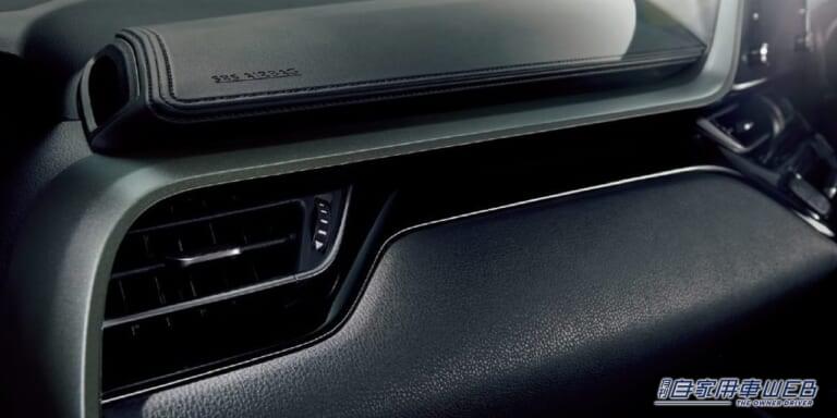 インテリアでは、ブラウンの差し色やベージュのステッチを施した専用シート表皮や専用ベージュステッチの本革巻き3本スポークステアリング、シフトレバーブーツにブラックのインストルメントパネルアッパー&コンソールボックス、ドアトリムオーナメント(ダイヤモンドカット造形+シボ加工)を採用した。