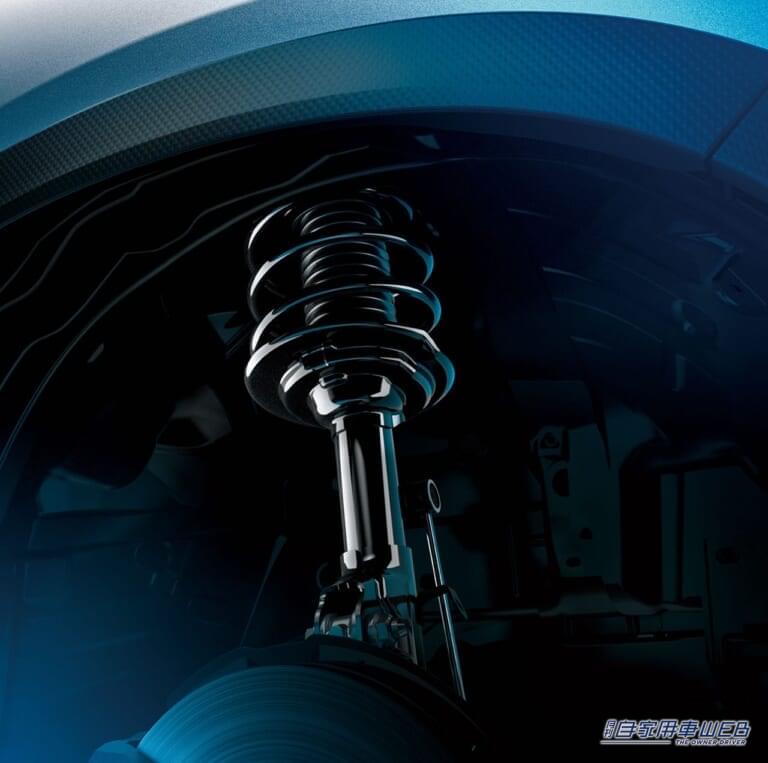 フロントサスペンションには、快適な乗り心地と俊敏でスポーティな走りを高次元で両立する、STIチューニング 日立Astemo製SFRDを採用し、コーナリングなど車体に大きな入力が加わった際は高い減衰力を発生させてロールを抑制。タイヤの接地性を向上させつつ、通常走行時では低い減衰力でロードノイズなどの車両に伝わる微振動を軽減しているという。また、フロントサスペンションの特性に合わせ、リヤサスペンションも専用チューニングとし、車体全体のバランスを最適化してリヤのスタビリティを高めている。