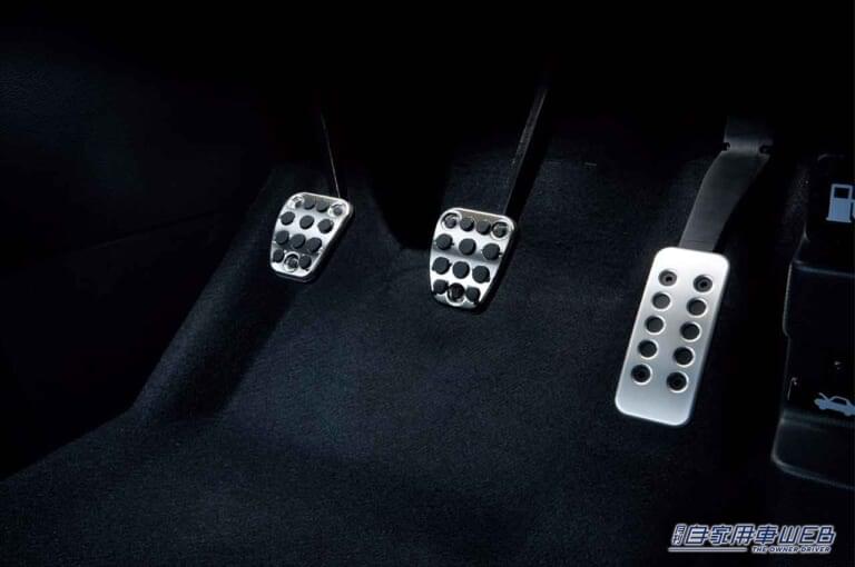 スポーティなアルミ製のペダルは2ペダルのCVT車用と2ペダルの6MT車用を設定。スポーティさを彷彿させるアイテムのひとつで、とくに「RS」グレードのユーザーから支持が高い。