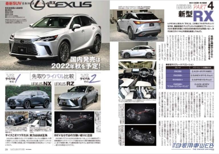 レクサスの人気SUV「RX」も、この秋にフルモデルチェンジを予定。今は世界的にSUVの人気が高く、トヨタが展開するレクサスにも有力モデルが揃っており、その中核を占めるのがRXだ。プラットフォーム(GA-K)やパワートレーン、メカニズムからして、ライバルとなるのはレクサス同門のNXや、デビューしたばかりのクラウンクロスオーバーあたりになるだろう。SUV先取りライバル比較は必見だ。