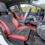 ノート オーラはワイドフェンダーや専用アルミホイールなどで差別化されるほか、内装質感も1ランク上の仕立てとなる。Gレザーエディションは本革シートが標準となる。