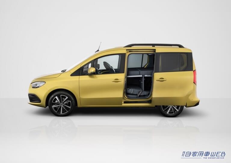 小型ミニバン「Tクラス」は、2022年4月にドイツ本国でワールドプレミアした両側スライドドアを採用する小型ミニバンだ。5人乗りの全長4498mm、全幅1859mm、全高1811mmというボディサイズの標準ボディのほか、今後は3列7人乗りのロングホイールベース仕様も追加される予定となっている。