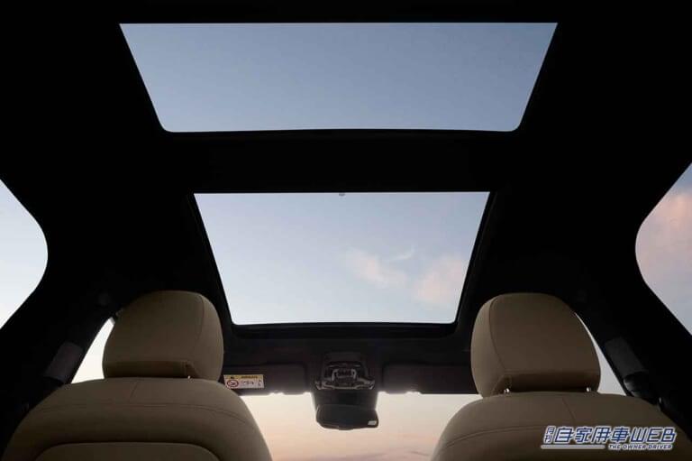 車内はワンランク上の品質を実感できる空間に仕上がっており、華やかな雰囲気が漂う明るいベージュのレザーシート(8ウェイパワーシート/シートヒーター付)や、ブラックとベージュを組み合わせたレザーダッシュボードなど、艶やかで上質なインテリアとなっている。そして、車内の開放感を高めるパノラマサンルーフや、高品位な音質を実現するharman/kardonプレミアムオーディオシステムといった、限定車ならではのアメニティ装備が、ドライブの楽しみを広げてくれる。