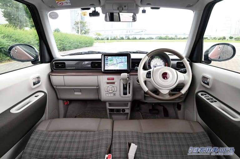 走りでは、直線基調のボディラインで車幅感覚がつかみやすく、4,4mと小回り性能も抜群。また、トランスミッションが従来の副変速機付きのジヤトコ製から、アイシン製のCVTに変更されたことで加速フィールの軽やかさと滑らかさに磨きがかかった感じがします。夜間の歩行者も検知するデュアルカメラブレーキサポートをはじめ、先進の安全運転支援システムが全車標準装備で、安心感も高いラパンLX。市街地をメインで乗ることが多いファミリーにとくにおすすめのモデルです。