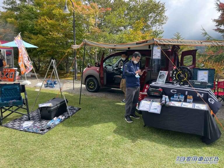午前中の早い時間から多くの人が集まっていたルノー カングー ジャンボリーだが、この日の目玉イベント、新型カングーの発表までまだ少し時間があるので、会場内を少し散策すると、ショップやブースにはすでにひとだかりができていた。