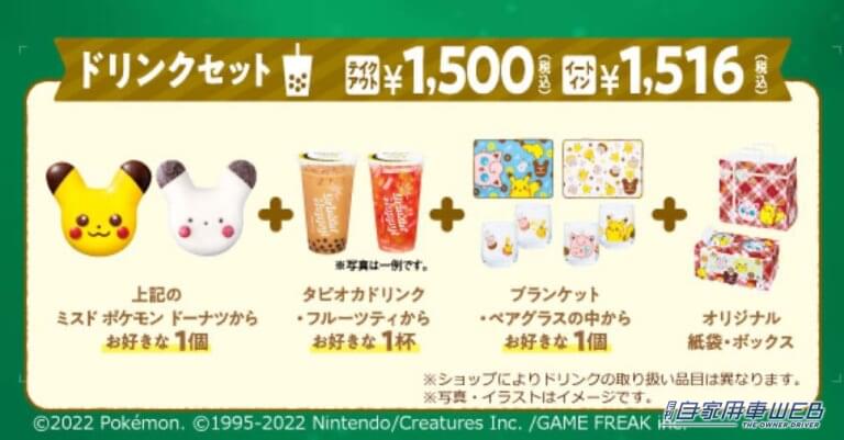ドーナツとグッズを一度にお楽しみいただけるクリスマスセットには「ミスド ポケモン ブランケット」2種と、「ミスド ポケモン ペアグラス」2種の全4種のグッズが登場。ピカチュウやプリンが描かれたオリジナルデザイン。