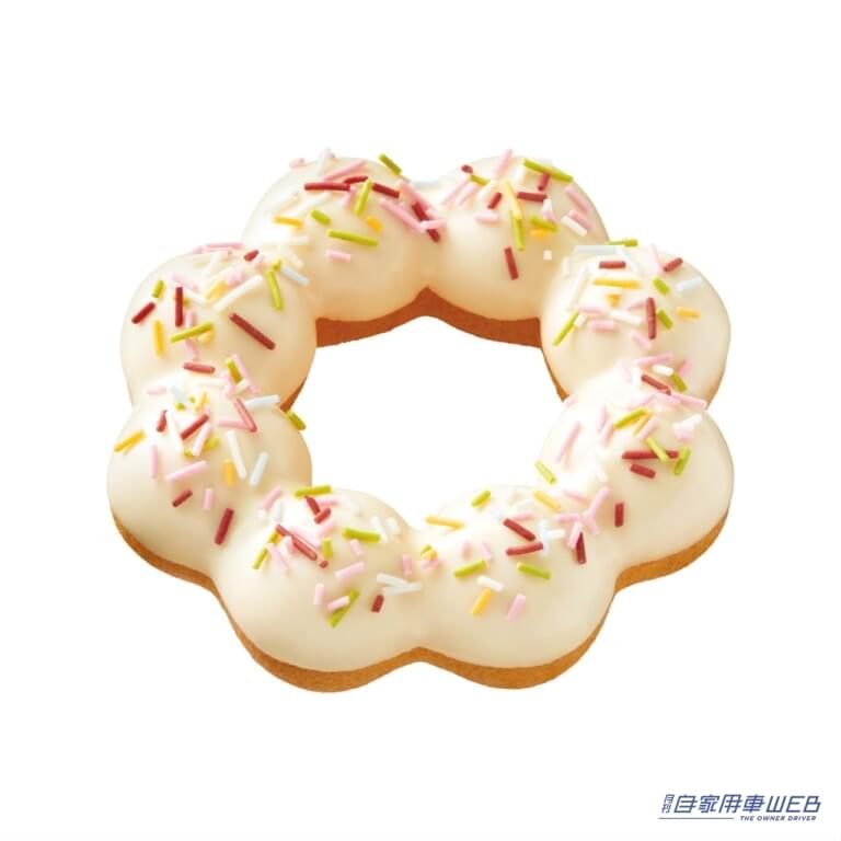ポン・デ・リング生地をホワイトチョコでコーティングし、カラーシュガーをトッピング。