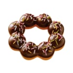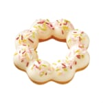 人気キャラクター「ピカチュウ」を雪だるまで表現したドーナツ。ふんわりとしたイースト生地にホイップクリームを入れて、ホワイトチョコでコーティング。キラキラトッピングで雪をイメージし、こちらも目とほっぺはチョコレート。