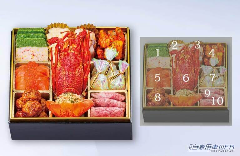 「和洋果折衷」、その名の通り、伝統的な「和」と、豪華に彩る「洋」、「果」には、宝石のように美しい大粒のいちごを一箱に入れ、贅沢なおせちに仕上げたのが、このおせち。内容は、A5ランクの宮崎牛ローストビーフ、豊後鶏の筑前煮、大分県かぼすぶりの照り焼き、佐賀県産あわゆき、または佐賀県産ゆきうさぎ他、魅力たっぷりの全23品。そして最大の特徴は箱いっぱいに敷き詰められた紅白苺だ。定番のおせち料理に福岡名産、いちごの王様「あまおう」と、白苺を盛り付け、さらに華やかで、新年を迎えるにふさわしい3段のお重となっている。