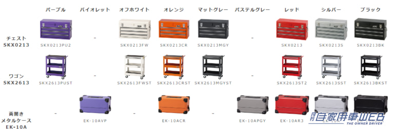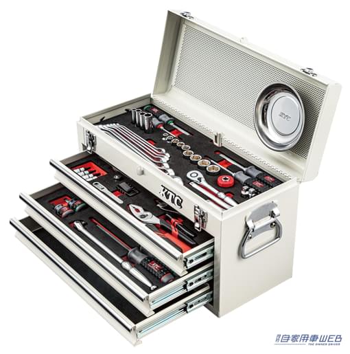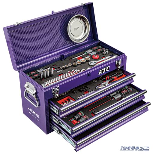 SKセールとは、新登場のケースや特別カラー、プロメカニックに向けて追加されたツールセットなど、期間中は期間限定・数量限定品などのアイテムをお買い得価格で購入できる、KTCの目玉セールだ。自動車整備、一般機械整備、二輪整備、等々、多種多様なメンテナンス作業に対応する工具セットや、家庭用でも重宝する工具セットなど、様々なツールケースを取り揃えている。