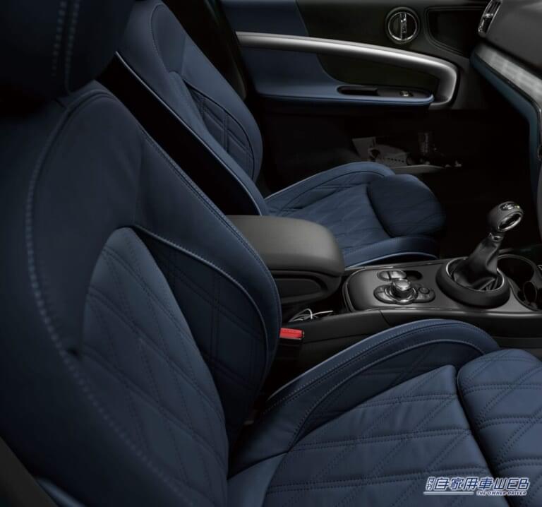 インテリアは、MINIクラブマン専用シートとして人気を博したレザー・チェスター・インディゴ・ブルーを特別に装備している。深く美しいブルーが、ドア・トリムおよびダッシュボードのアクセント・ストリップと連動し、インテリア全体に一体感をもたらしている。