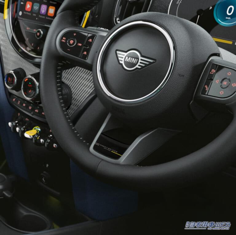 エクステリアは、MINI 3ドア、5ドア、コンバーチブルで人気の「ルーフトップ・グレー」を特別に装備。ブラック・ルーフ、ブラック・ミラー・キャップ、ピアノ・ブラック・エクステリアとのコンビネーションで、都会的かつスポーティな印象としている。