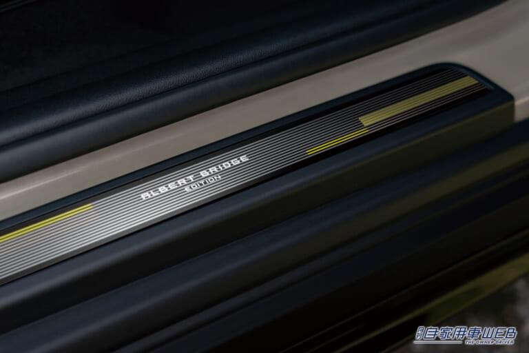 インテリア・サーフェスにはMINI Yoursインテリア・スタイル・シェーデッド・シルバー・イルミネーテッドを採用し、ダッシュボードを彩るイルミネーションが、上質な室内空間を演出。MINI Albert Bridge Edition専用デザイン・パーツとしては、専用バッジを施したフロアマットやエンブレム入りのドアシルを装備し、さらに、上質なレザーを用いたナッパ・レザー・ステアリングのスポーク下部にも「ALBERT BRIDGE EDITION」の名を冠している。