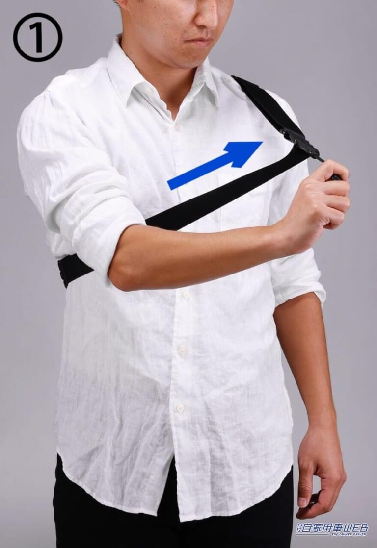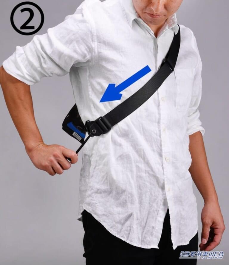 4.ストラップを緩めると、体の前で荷物を楽に出し入れできます。