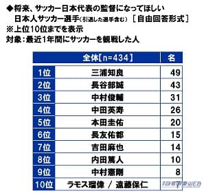 質問【将来、日本代表の監督になってほしい選手(引退した選手も含む)は?】