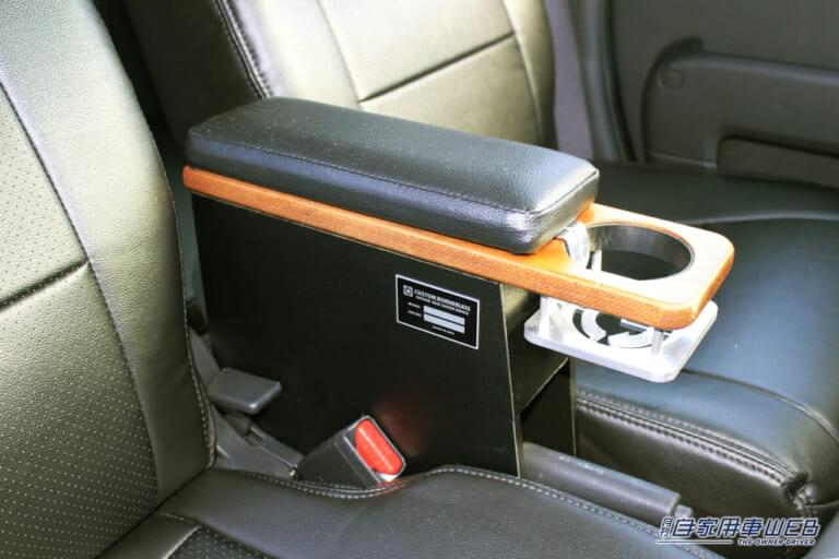 ・ドリンクホルダーにはアルミ仕様の「CUSTOM BORDERLESS」ロゴデザインプレートを装飾