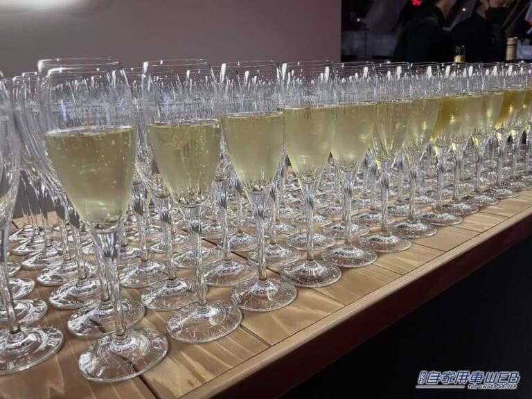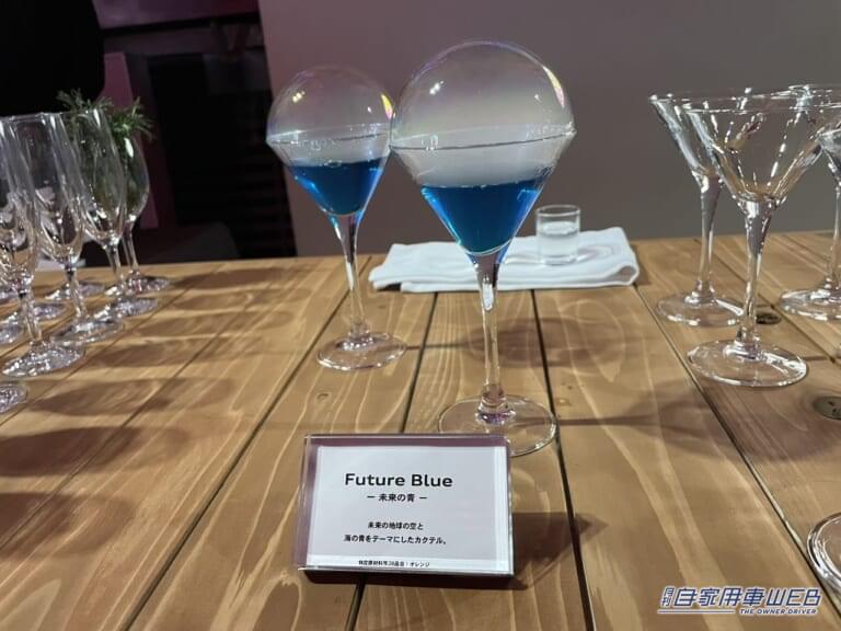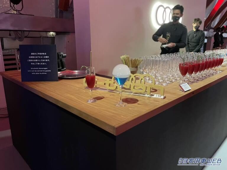 オリジナルのカクテルとシャンパンに加えて、ノンアルコールカクテルも。植物の茎を使ったストローもあり、Audiの姿勢をここでも感じることができる。
