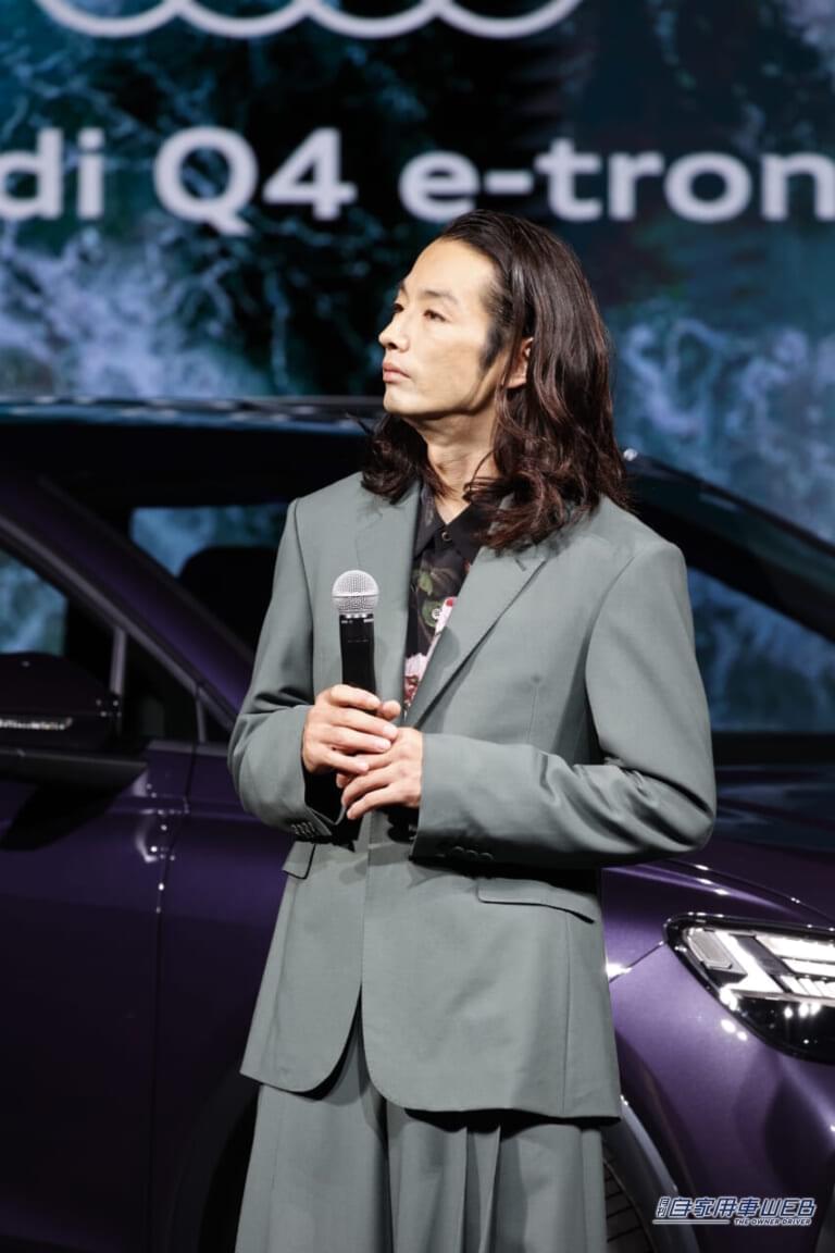俳優の森山未来さんも登場し、展示されていた「Q4 e-tron」に乗車して、その乗り心地を語ってくれた。